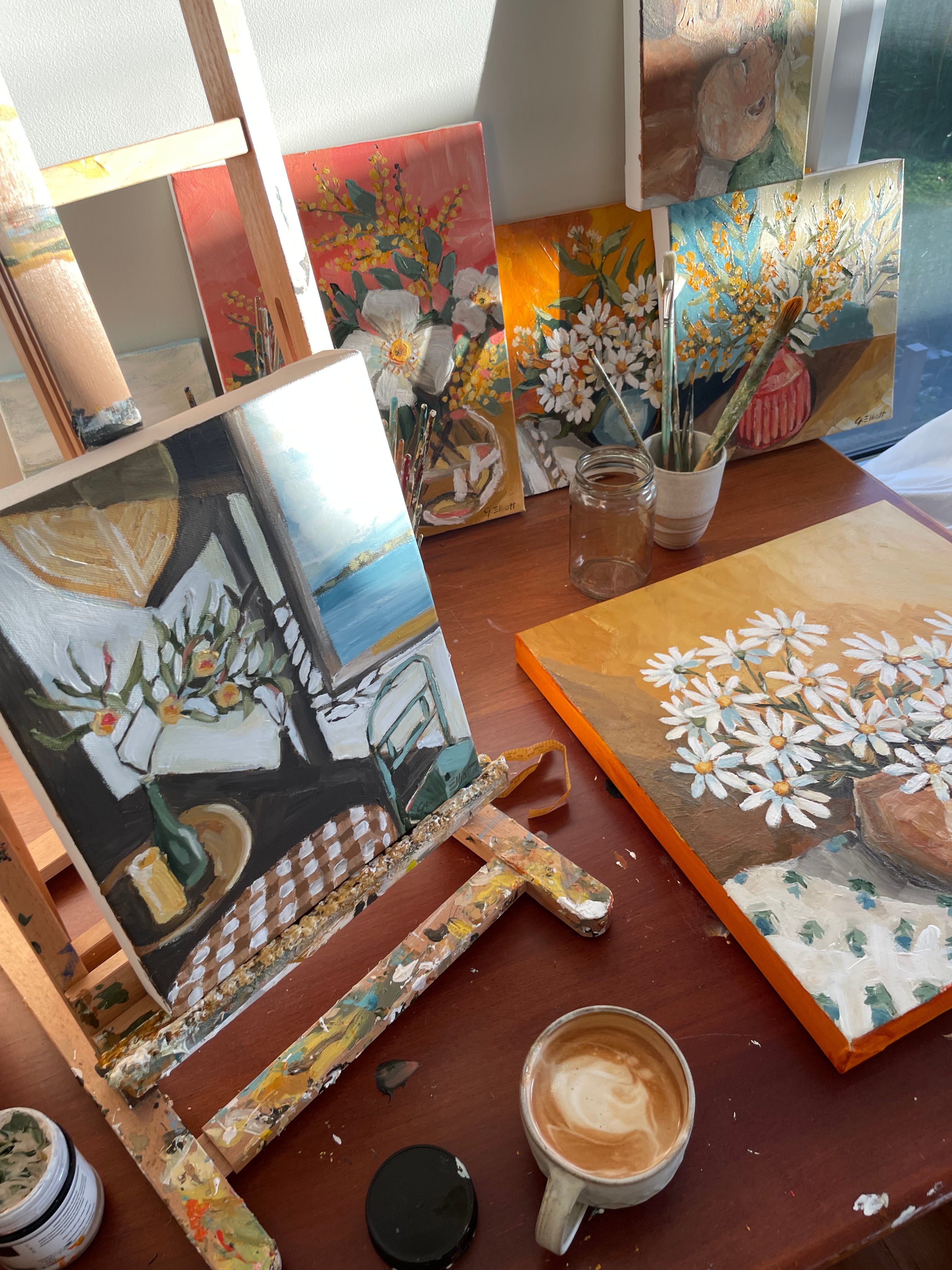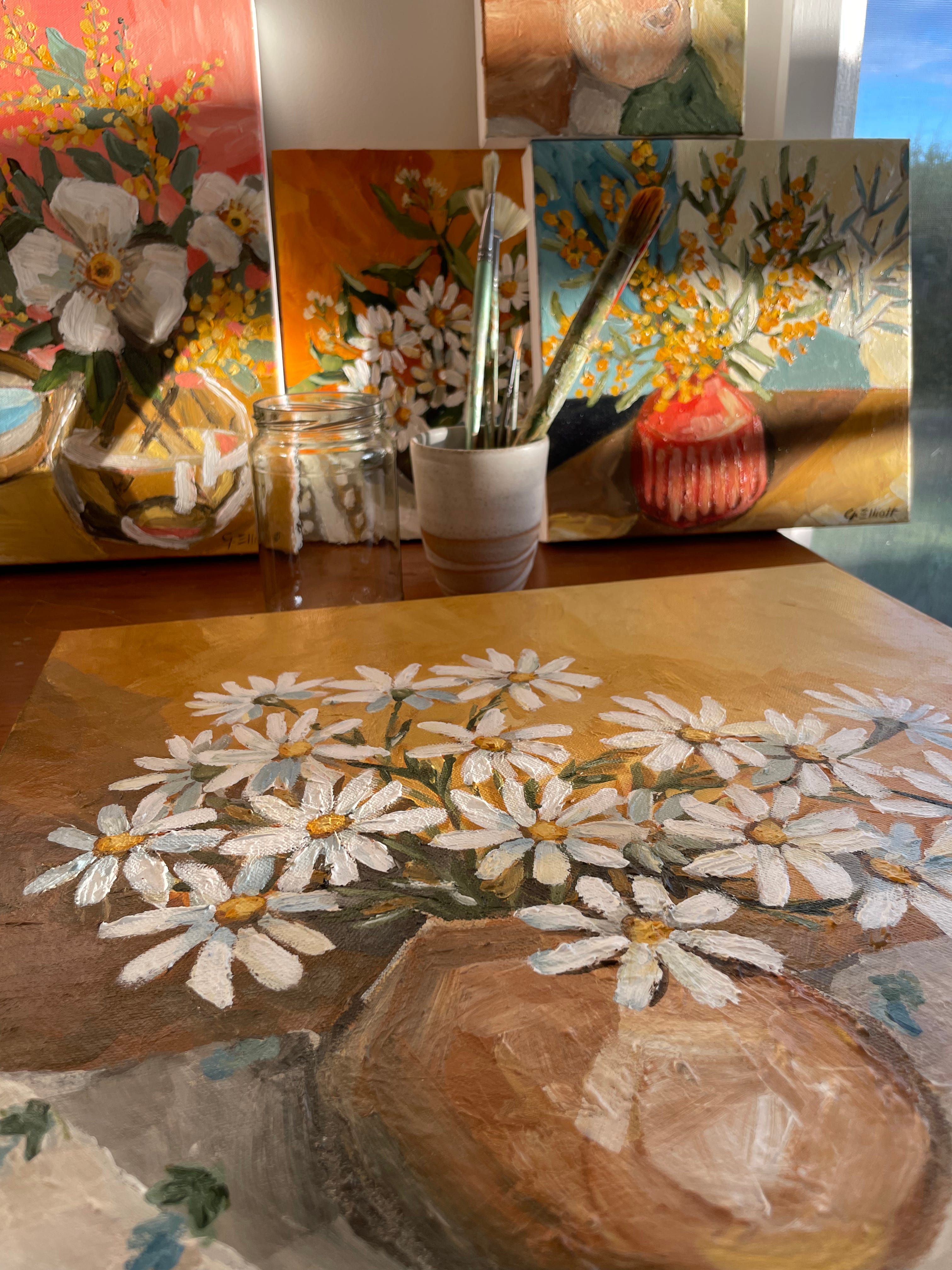 This is a lovely and long interview with Tasmania/ Lutruwita-based Georgie Elliot, who is inspired by nature, and as someone who has moved around a lot, she has endless inspiration found in the multifaceted Australian landscape. I want to save all your attention span to Georgie’s interview, so I’ll keep my intro short and sweet! Like me, Georgie has a 4 and 2 year old, but also a one-year-old! I’m so amazed and in awe of her ability to keep practising art and make time for this interview.